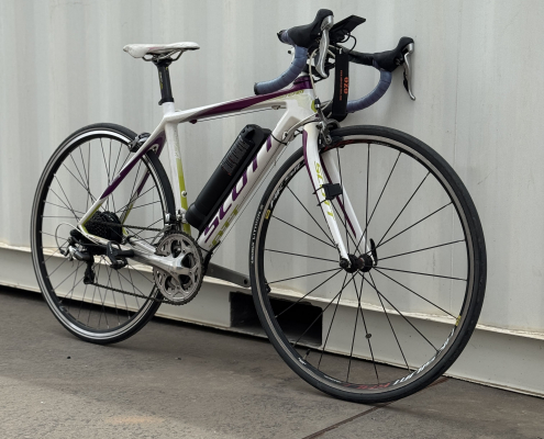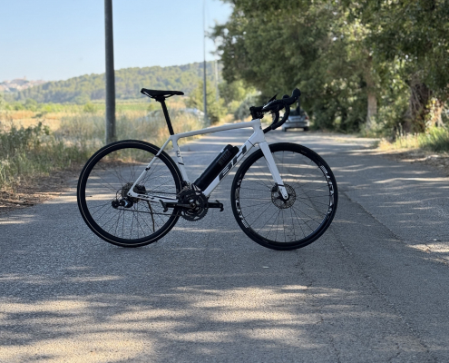 Images de vélos de route électriques (et vélos de course) et de leurs utilisations. Ces types de vélos sont utilisés pour des trajets plats.